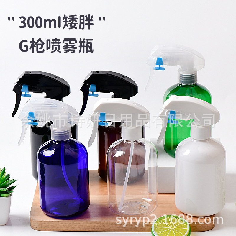 卸売り300mlの丸い肩の低い太ったPETペットボトルG銃手ボタン式の細い霧スプレーガン自動車美容スプレーボトル