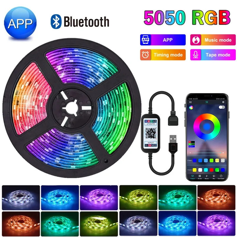 5vライト付き5050rgbカラフルなbluetoothライト付きセット携帯電話APP制御usbライト付きテレビ背景雰囲気