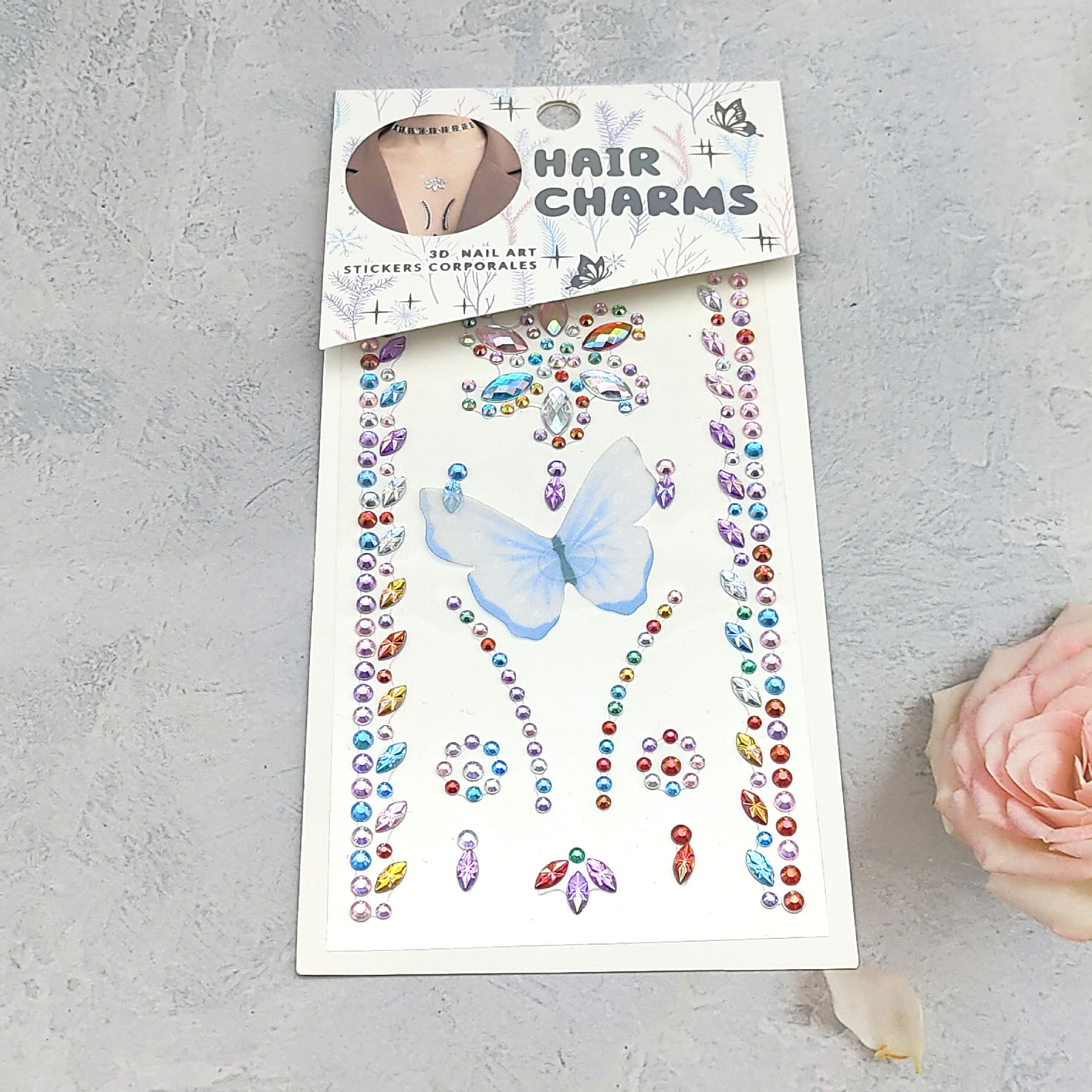 クロスボーダー热い贩売フェイシャル装饰ドリルステッカーガーゼ蝶ダイヤモンド宝石ステッカー子供ステージアイメイクラインストーンステッカー