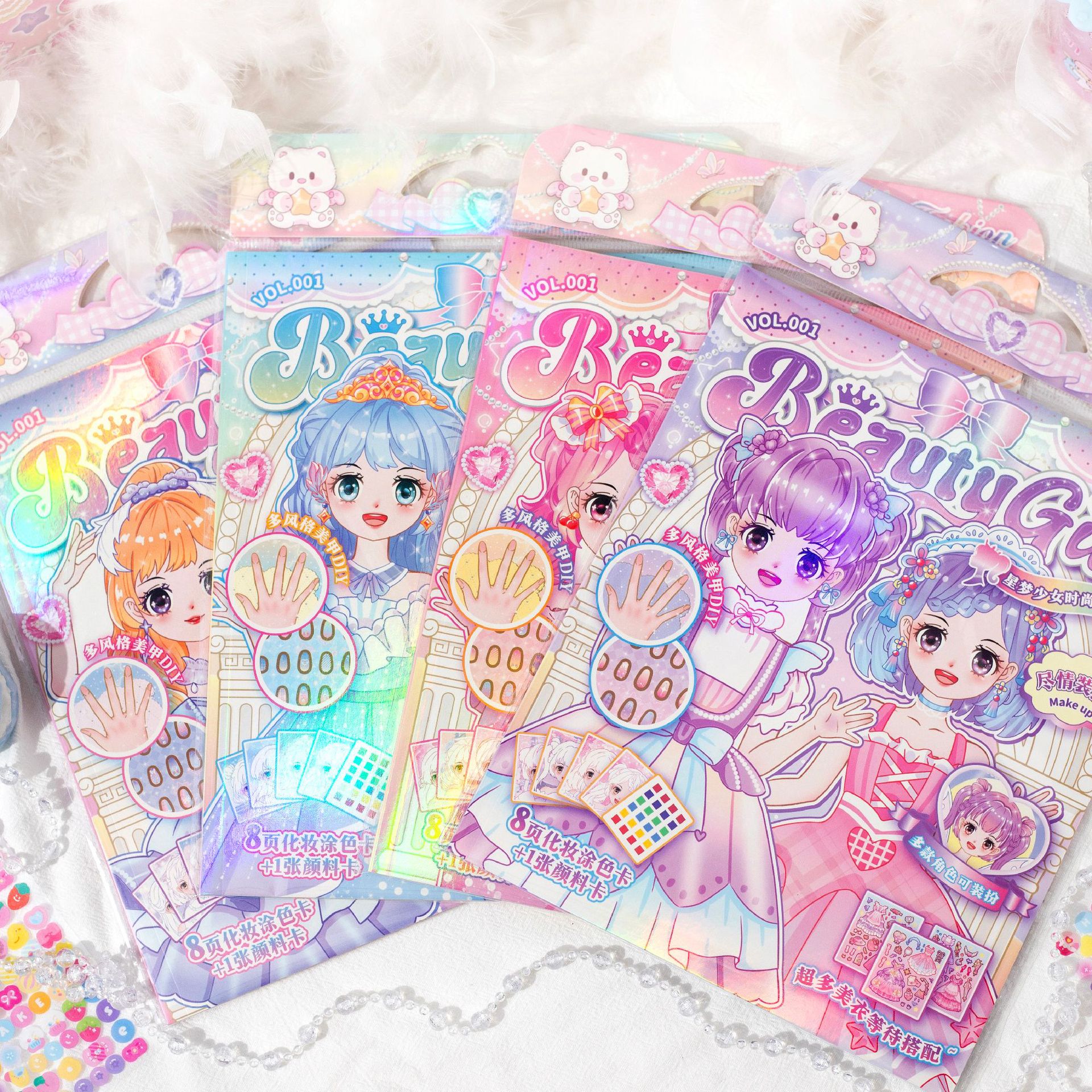 プリンセスは魔法のショーの化粧の色を塗って本の子供の美少女の絵のスーツの女の子の手作りの色を塗ります。