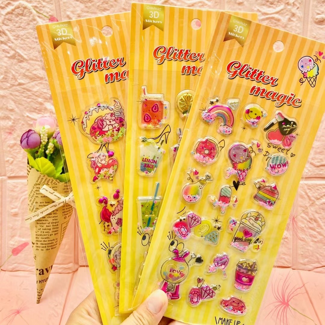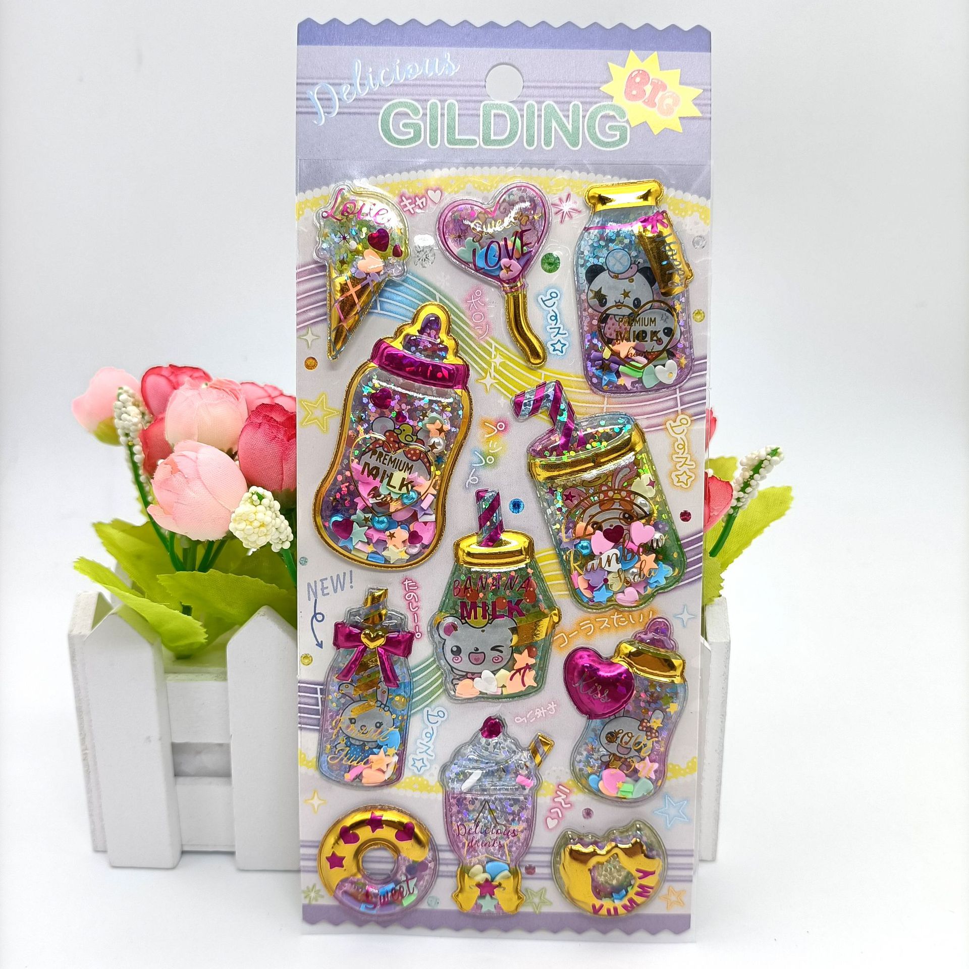 ブリスターシェイクカード、揺れるグリッターバブルステッカー、立体バブルシェルステッカー、凹凸装飾ステッカー、携帯電話ステッカー、手帳ステッカー