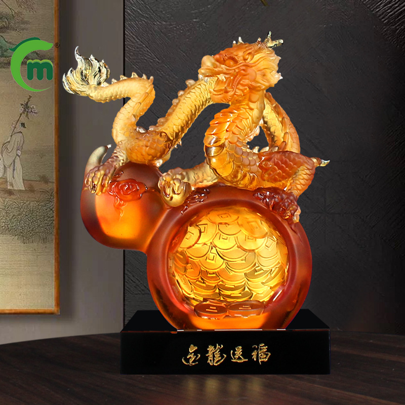 鋒明瑠璃生肖龍置物古法瑠璃祥龍如意龍年創意装飾ビジネスプレゼントオーダーメイド