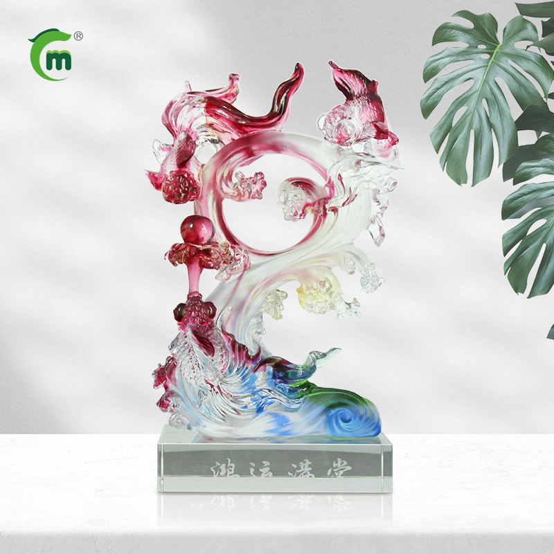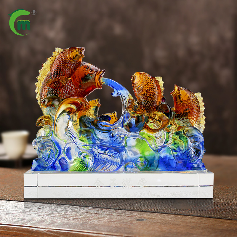 鋒明瑠璃金龍魚置物ビジネスギフト家庭装飾用品古法瑠璃魚置物鴻運満堂