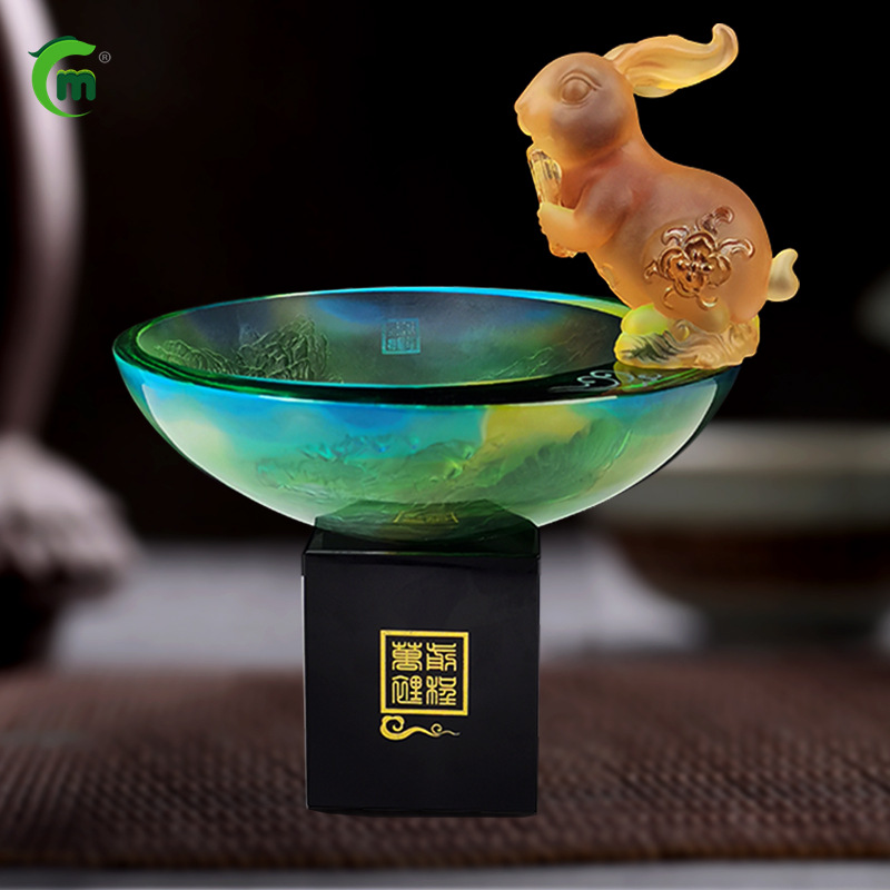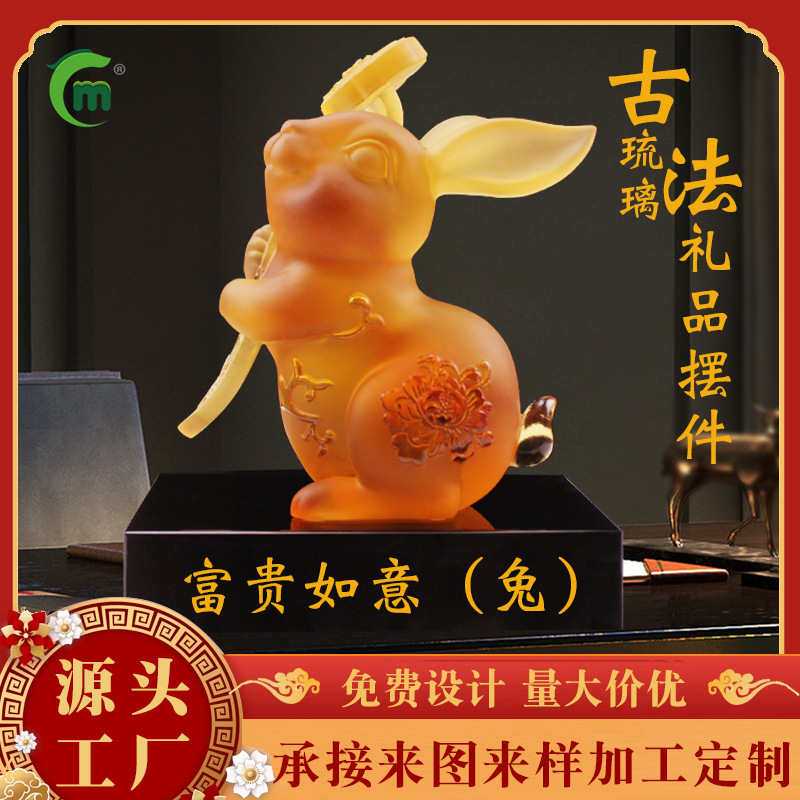 鋒明古法瑠璃兎十二生肖置物銀行保険会社兎年記念ギフトメーカー卸売り
