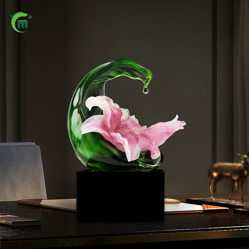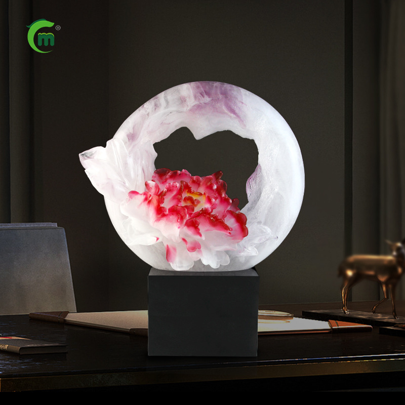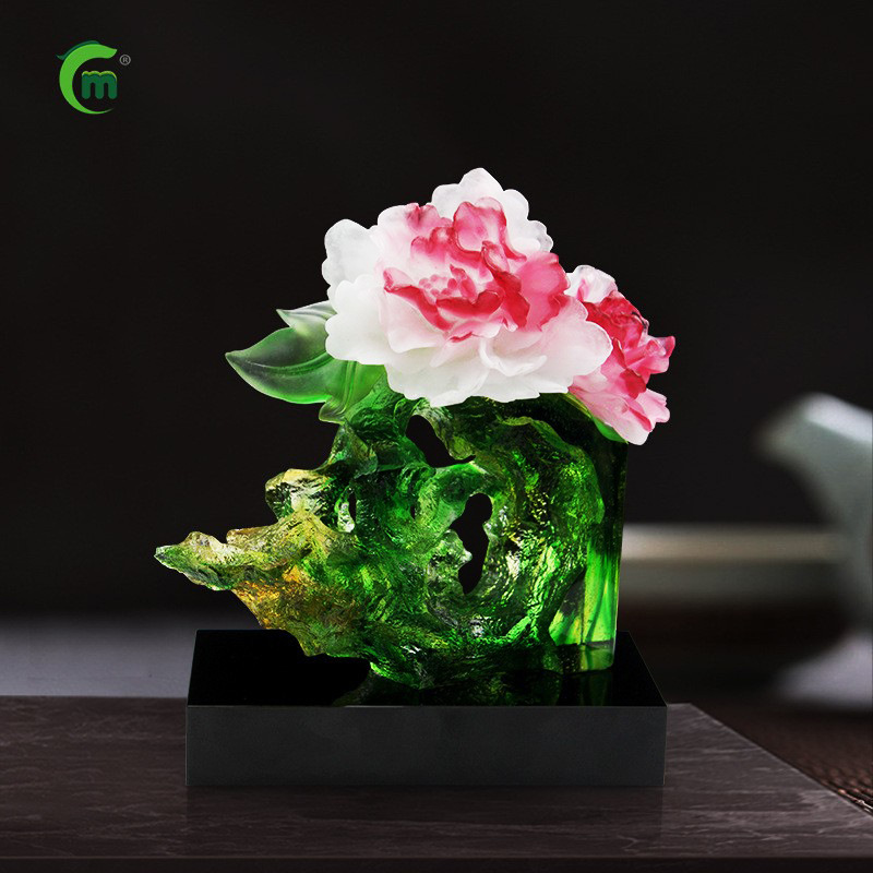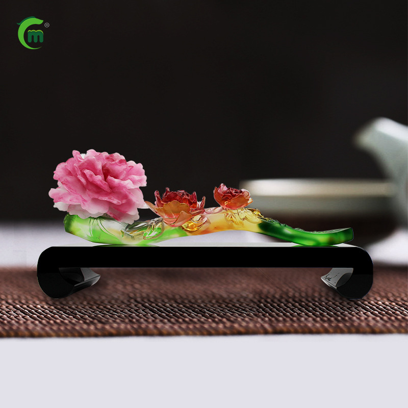 鋒明古法瑠璃牡丹花置物家庭装飾ビジネス移転プレゼント創意無料デザインオーダー