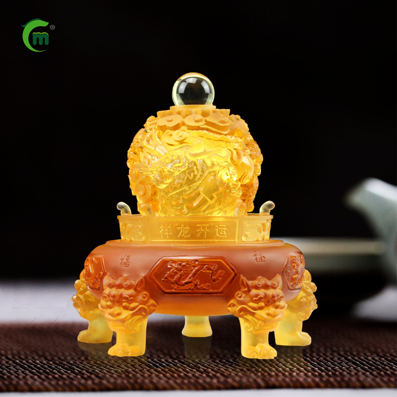 鋒明古法瑠璃祥龍鼎置物工芸品オフィス龍年開運置物鼎会社開業プレゼント