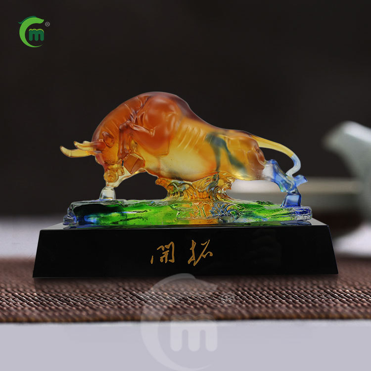 鋒明古法瑠璃牛生肖置物オフィスデスクトップ家庭装飾開業プレゼント牛置物工芸品