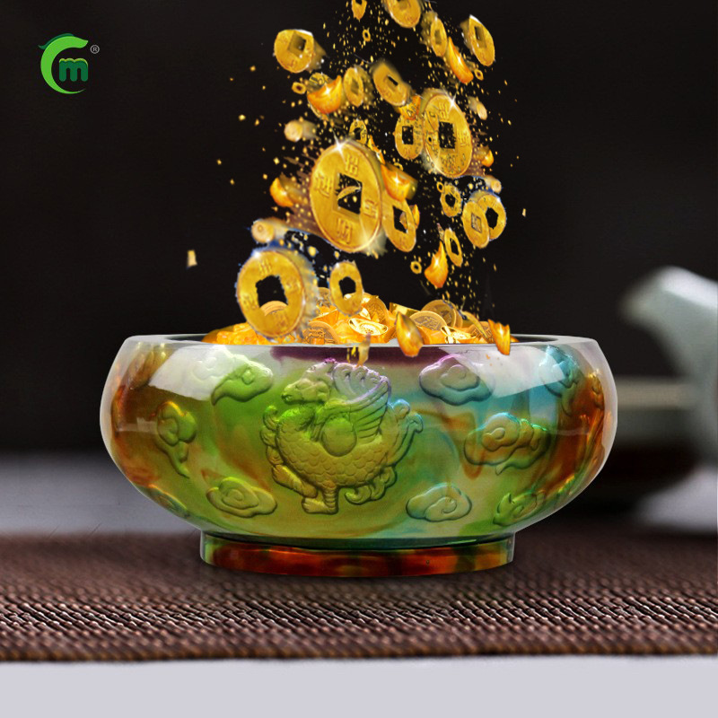 鋒明古法瑠璃四神獣聚宝盆置物工芸品招財家装飾品店開業プレゼント