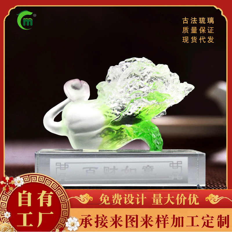 鋒明古法瑠璃白菜招財小置物ビジネスプレゼント客先瑠璃工芸品メーカー卸売り