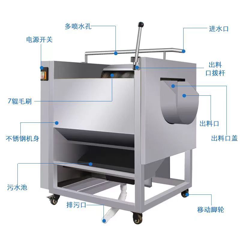 毛ロール洗浄機生姜ジャガイモさつまいも洗浄皮むき機多機能根茎類野菜洗浄設備