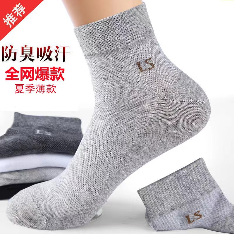 大人用靴下男性用中筒防臭夏用薄手吸汗通気ネット面四季型アルファベット男性用スポーツソックス