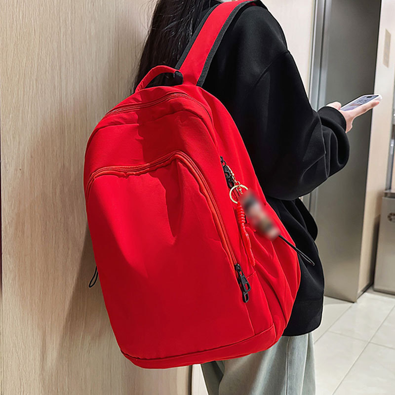 2025 新しい赤いバックパック女性無地大容量カジュアル旅行バックパック大学生高校生スクールバッグ男性
