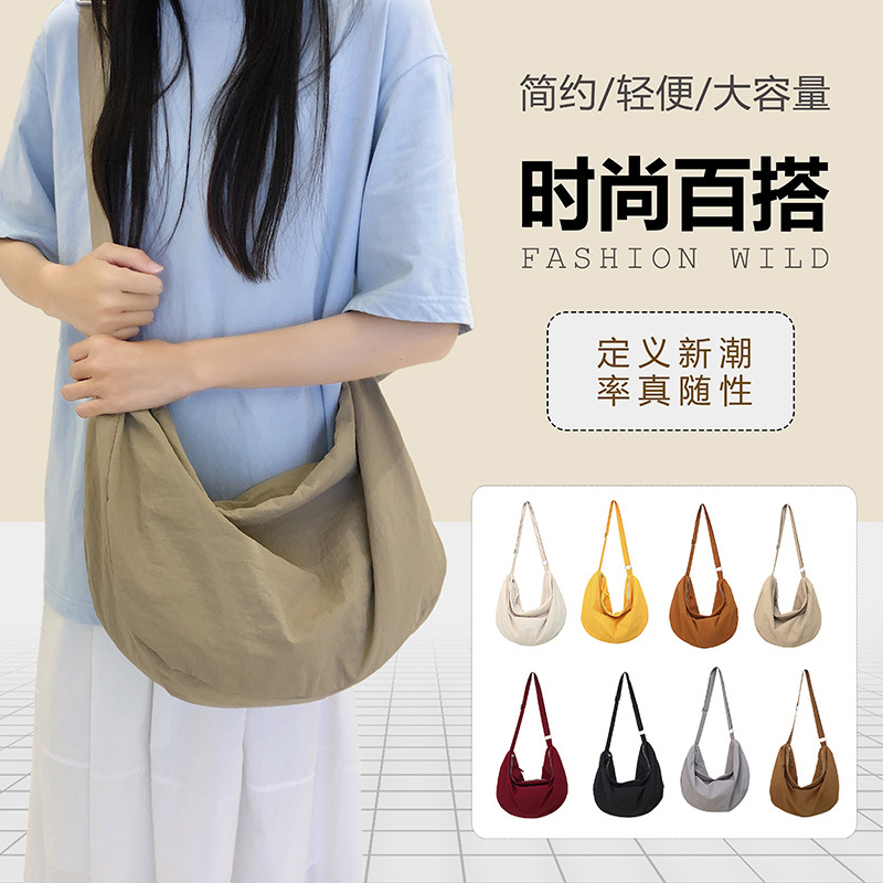 新しいフォレストスタイルのレイジースタイルクロスボディバッグ無地シンプルな通勤ショルダーバッグ軽量ナイロン大学生餃子バッグ