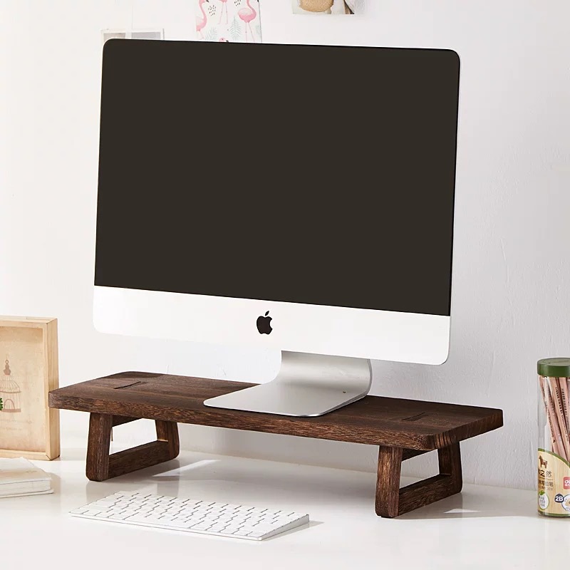 既製品の無垢材博古棚、コンピューターモニター用高さ調節可能な棚、オフィスデスク用収納棚、木製収納棚
