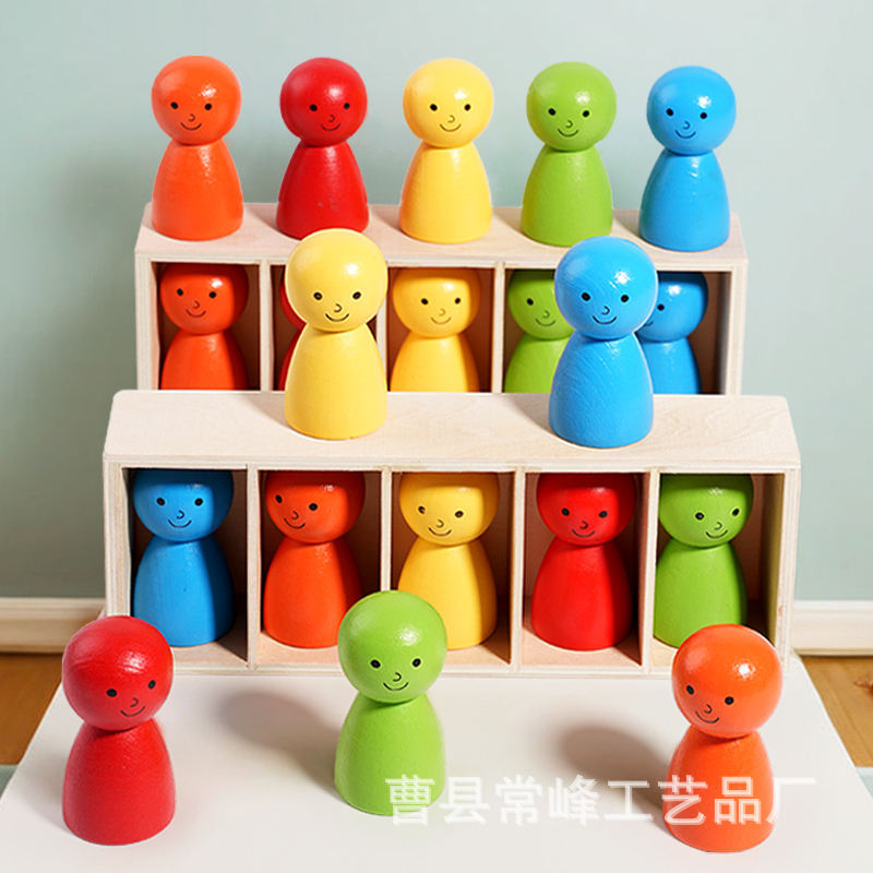 木のおもちゃ 色当てマッチング人形 早期教育 知育 赤ちゃん 手と目の調整 認知色啓発おもちゃ
