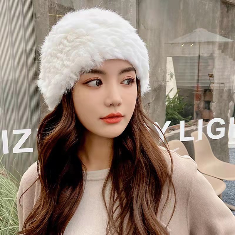 気品ファッションのウサギの毛の帽子の女性の冬の防寒の保温のかわいい毛の毛皮のニットの毛糸は顔の小さい帽子を現します。