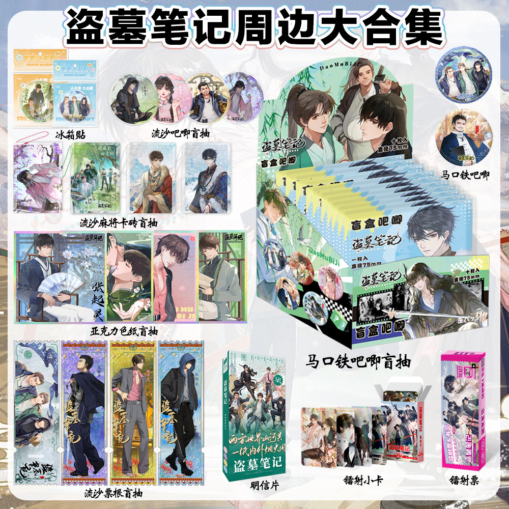 盗墓記記念ブリキバッジ、ブラインドボックス、流砂麻雀、ダブルフラッシュカラー紙チケット、呉邪、米