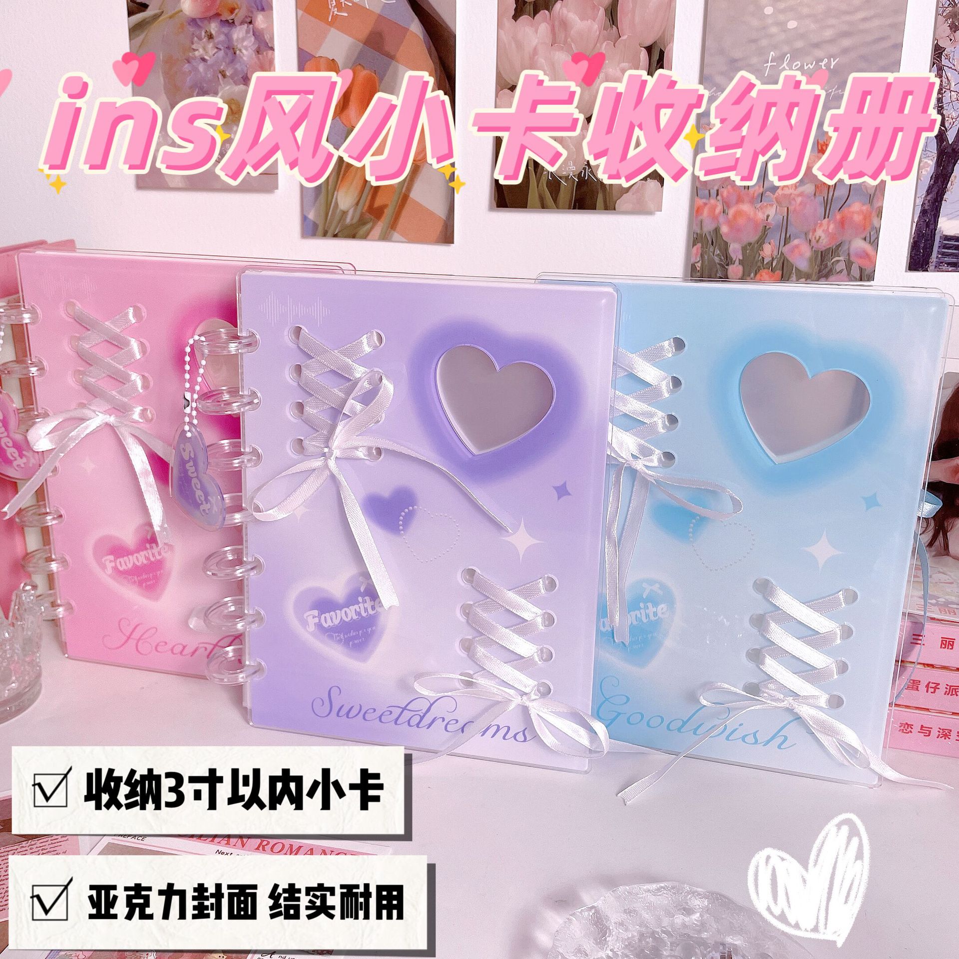 アクリル小カード収納帳3インチ内小カードバッグ1宮格2宮格4宮格ins風リボン付バインダーブック