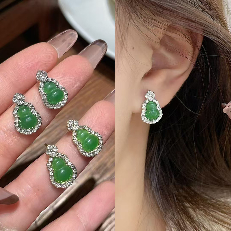 レトロ新中国式の祖母緑のヒョウタンのピアス