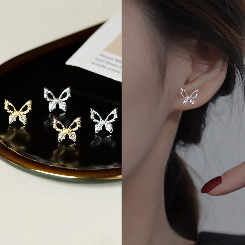 ファッショナブルでシンプルなスタイルの中空蝶イヤリング、女性用、多用途で軽くて豪華なイヤリング、ニッチで超フェアリーな多用途イヤリング
