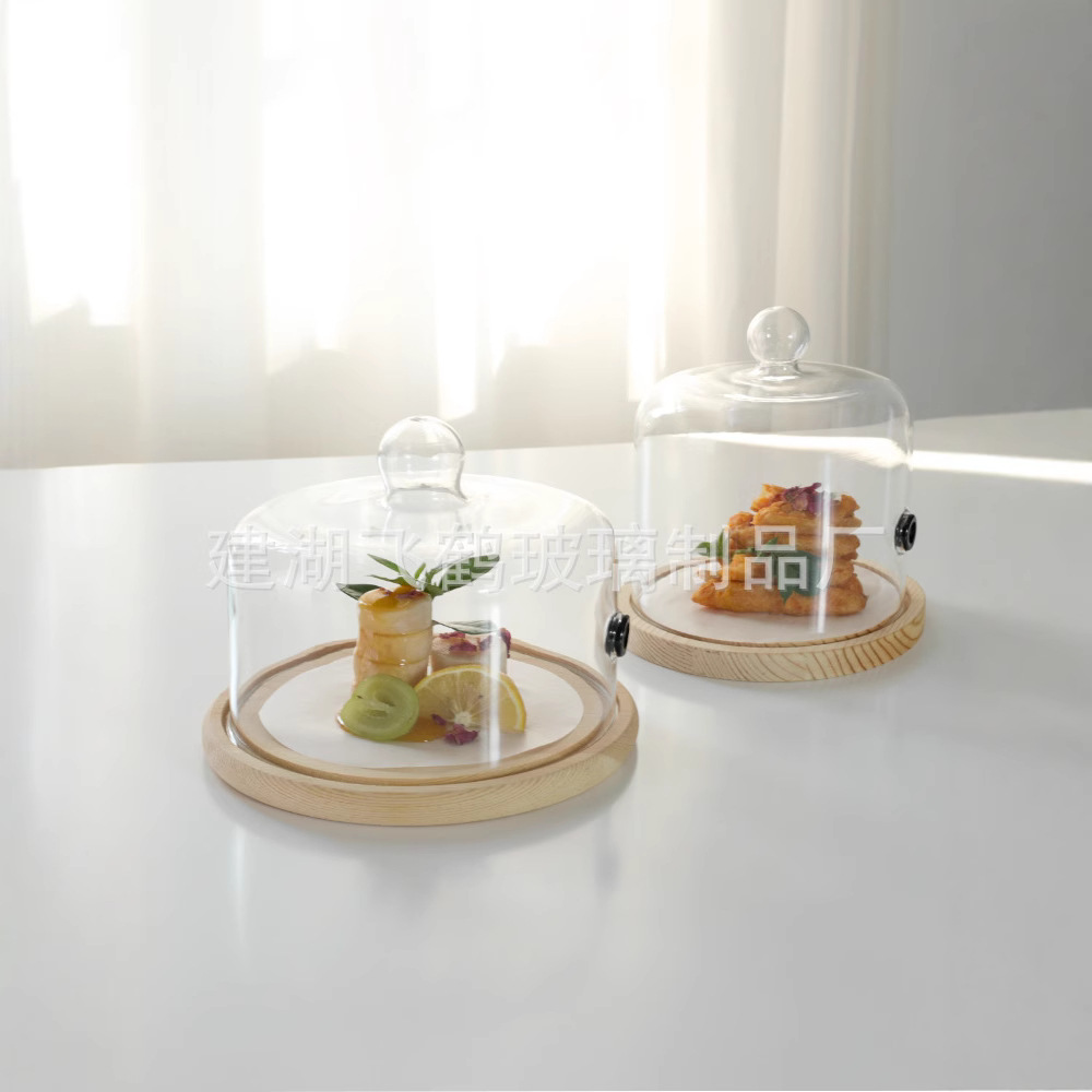 耐高温透明スモークガラスカバー木製トレイ付きホテル食器クリエイティブ分子料理お菓子グルメカバー