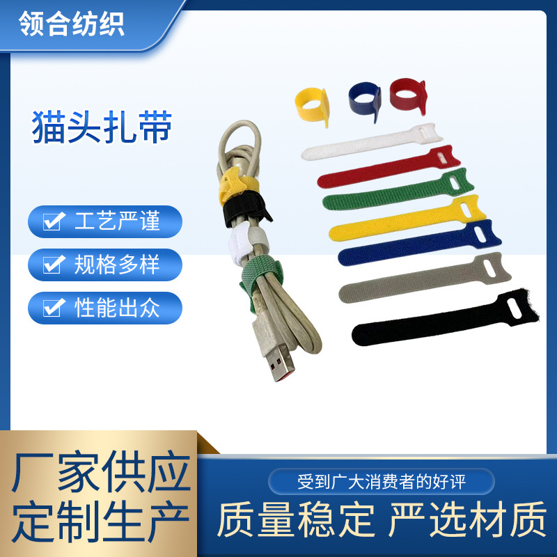 新商品の猫の頭のバンドのカラーの結束バンドの中程度の勾面の背もたれのマジックテープの電線の理線の帯の現物