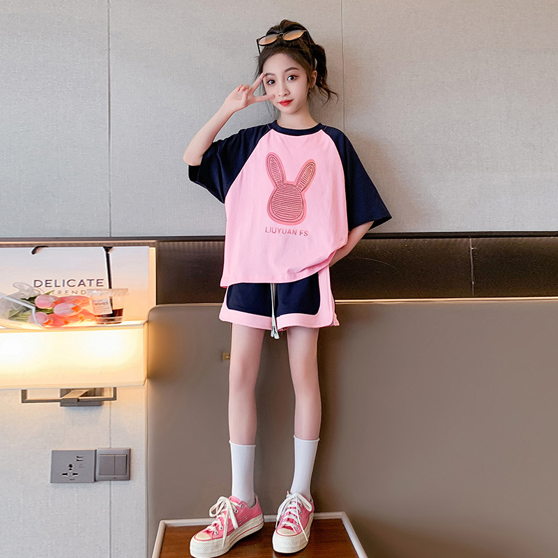 女の子カジュアルスーツ 2025 夏の新スタイルビッグ子供スポーツウェアクール半袖ショーツファッションツーピーストレンディなスタイル