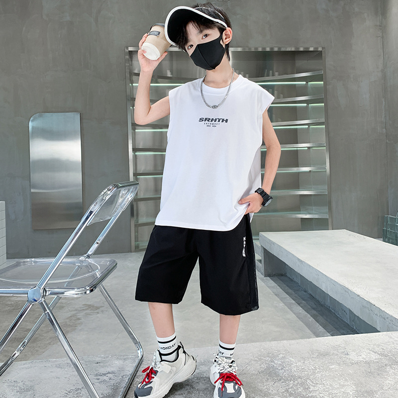 男の子速乾スポーツウェアセット 2025 夏新作ビッグ子供ファッショナブルなカジュアルベストショーツ 2 点セット