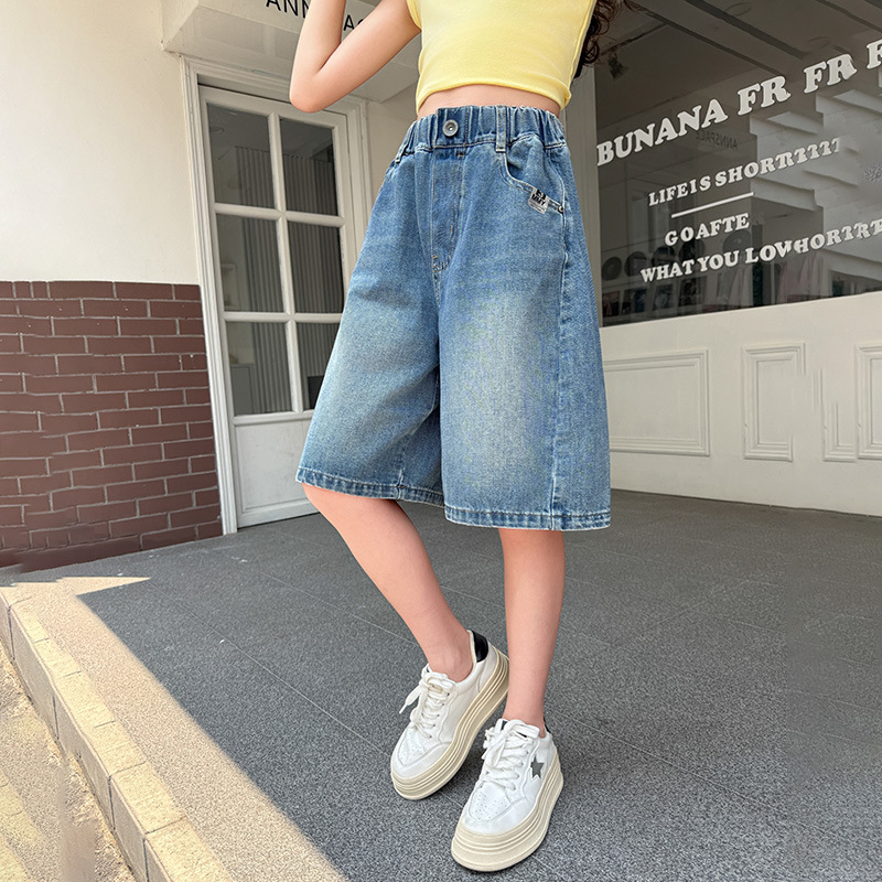 女の子のスタイリッシュなデニムキュロット 2025 夏の新しいスタイルの大きな子供用ファッショナブルなカジュアル多用途アウターショーツショートパンツ