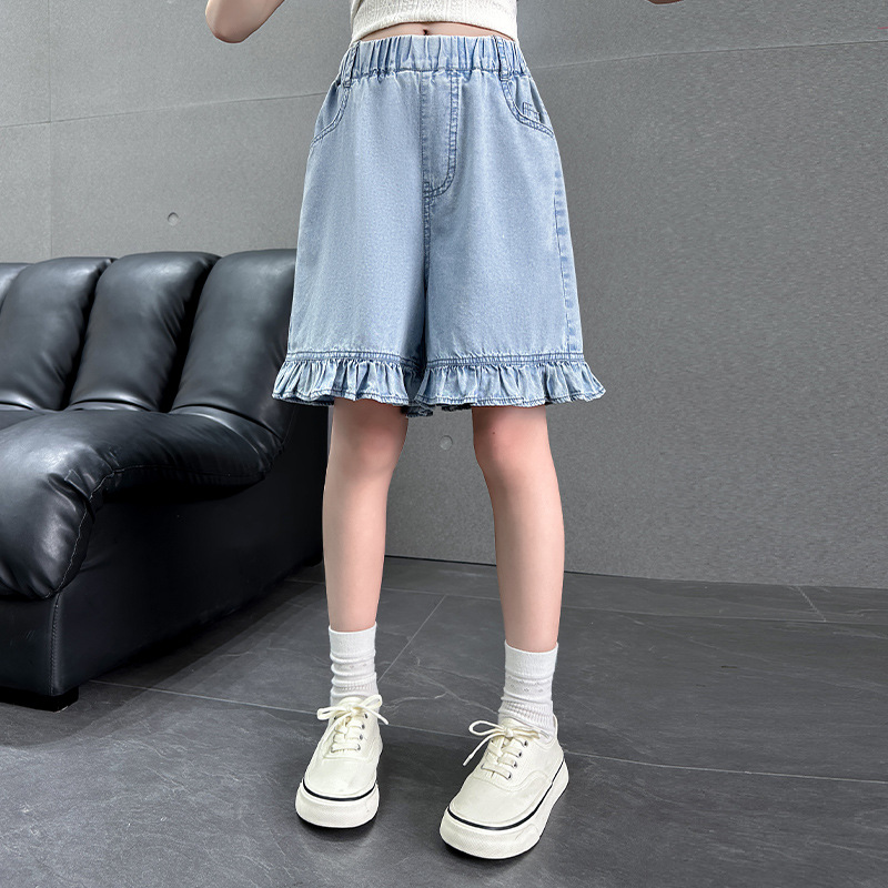 女の子の薄いデニムショートパンツ 2025 夏の新しい大きな子供のファッショナブルでスタイリッシュなカジュアルアウターウェア多用途ファッションパンツ