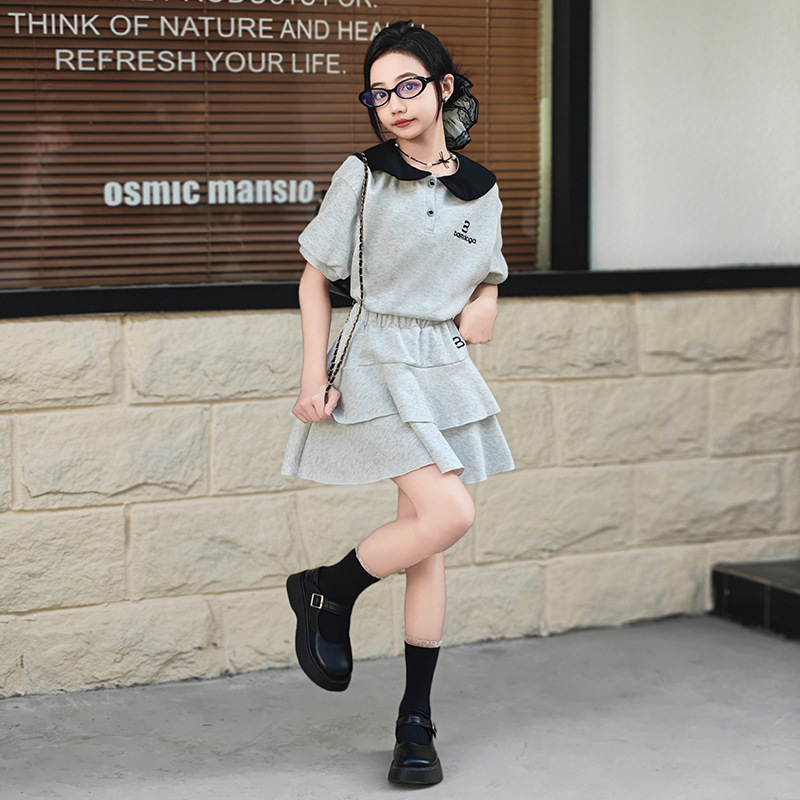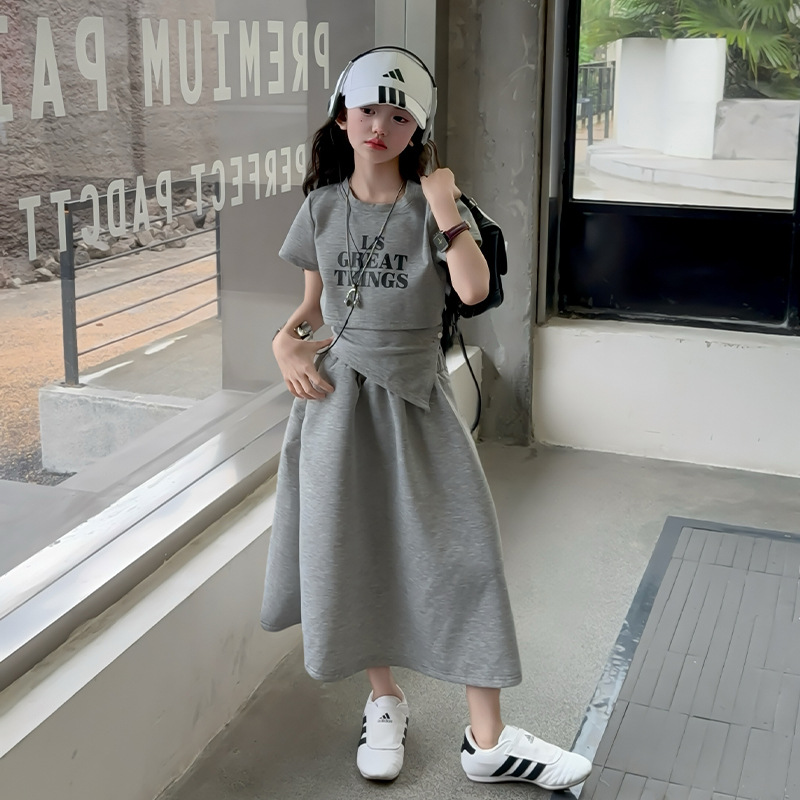 女の子韓国風スカートスーツ2025新作韓国風夏スタイル半袖スカート2点セット年長児向け