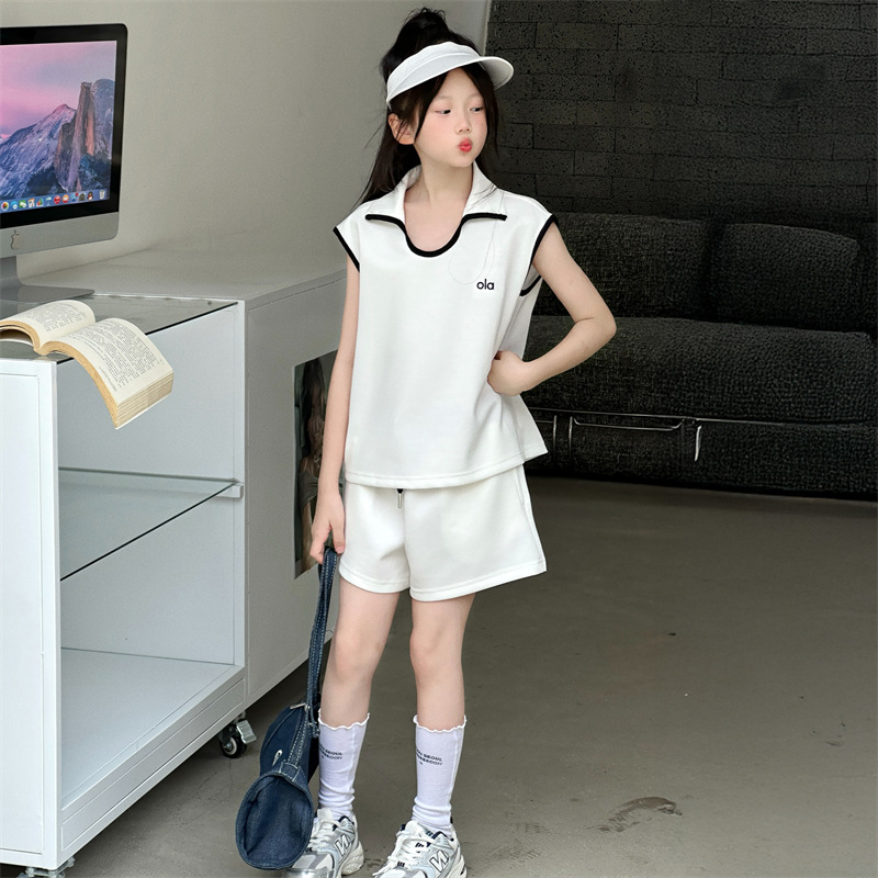 女の子クールスーツ 2025 夏の新スタイル大きな子供ファッショナブルなカジュアルラペルベストショーツスポーツウェアトレンディ