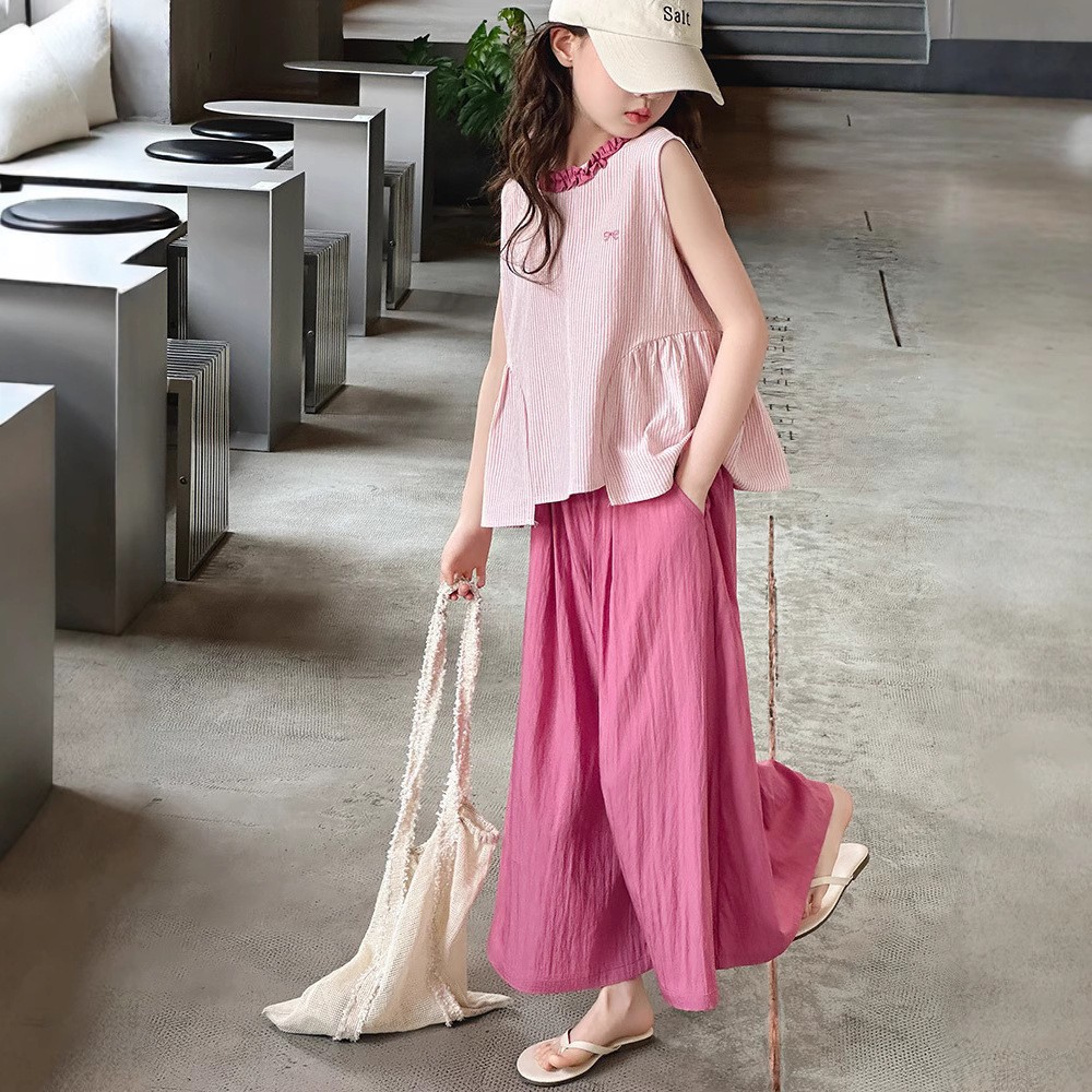 女の子クールノースリーブスーツ2025夏新作韓国風ベストワイドレッグパンツ山本パンツツーピーストレンドセット