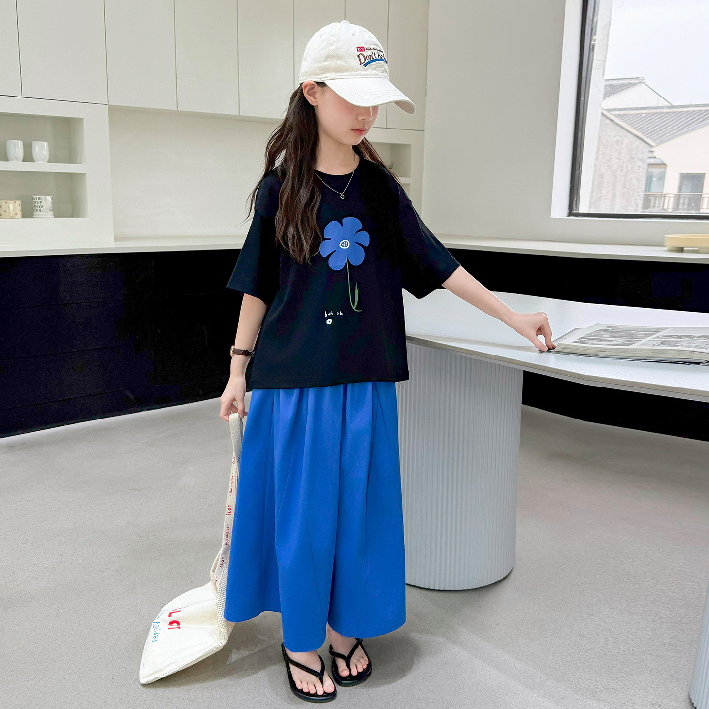 女の子韓国風レイジースタイル2025夏新作韓国風リラックス半袖ワイドパンツ年長児向け2点セット