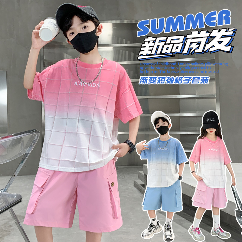 子供カジュアルグラデーションカラースポーツスーツ2025夏新兄妹服おしゃれな兄妹服2点セット