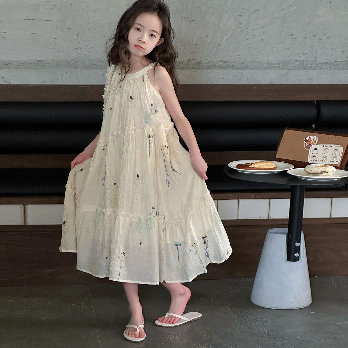 女の子フレンチホルターネックドレス 2025 新しいスタイル夏の子供スカート少女サマードレス休暇ビーチドレス