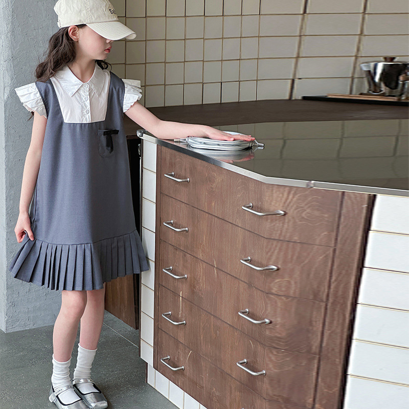女の子フライングスリーブドレス 2025 夏の新スタイル大きな子供のファッショナブルなカジュアルフェイクツーピースポロスカートシャツスカート