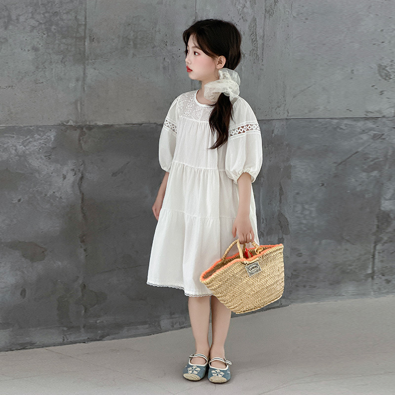 女の子パフスリーブドレス 2025 夏新作韓国風ファッショナブルな半袖プリンセスドレス韓国風スカートトレンディな