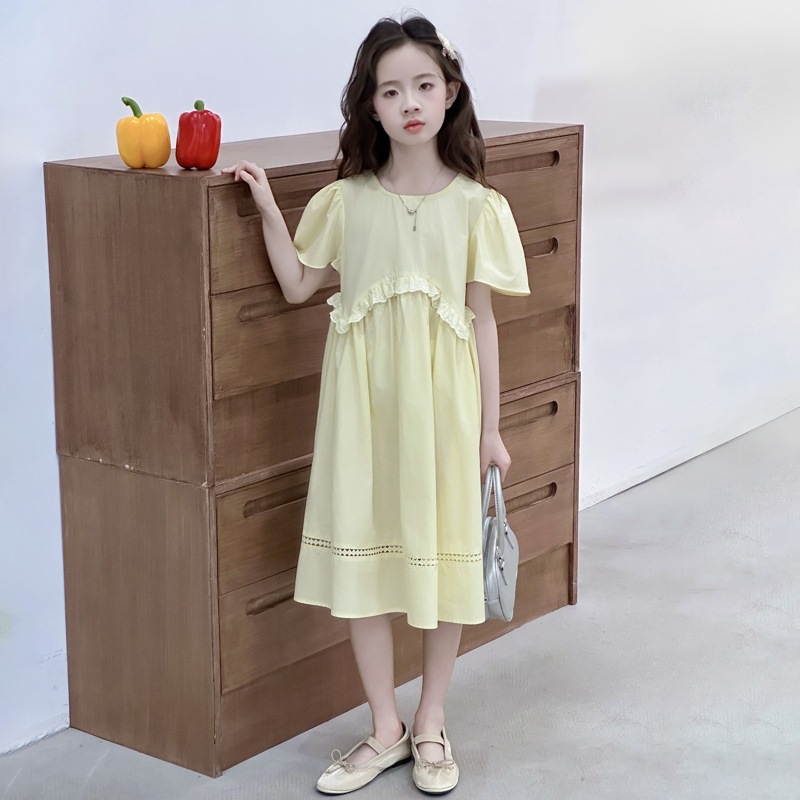女の子ドレス 2025 夏の新スタイル韓国スタイル半袖カジュアルスプライシングスカート大きな子供のための小さな女の子プリンセスドレス