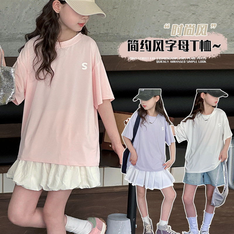 女の子の夏クール半袖トップス 2025 新しい韓国スタイルの多用途ルーズカジュアル速乾性半袖 T シャツ年長児向け