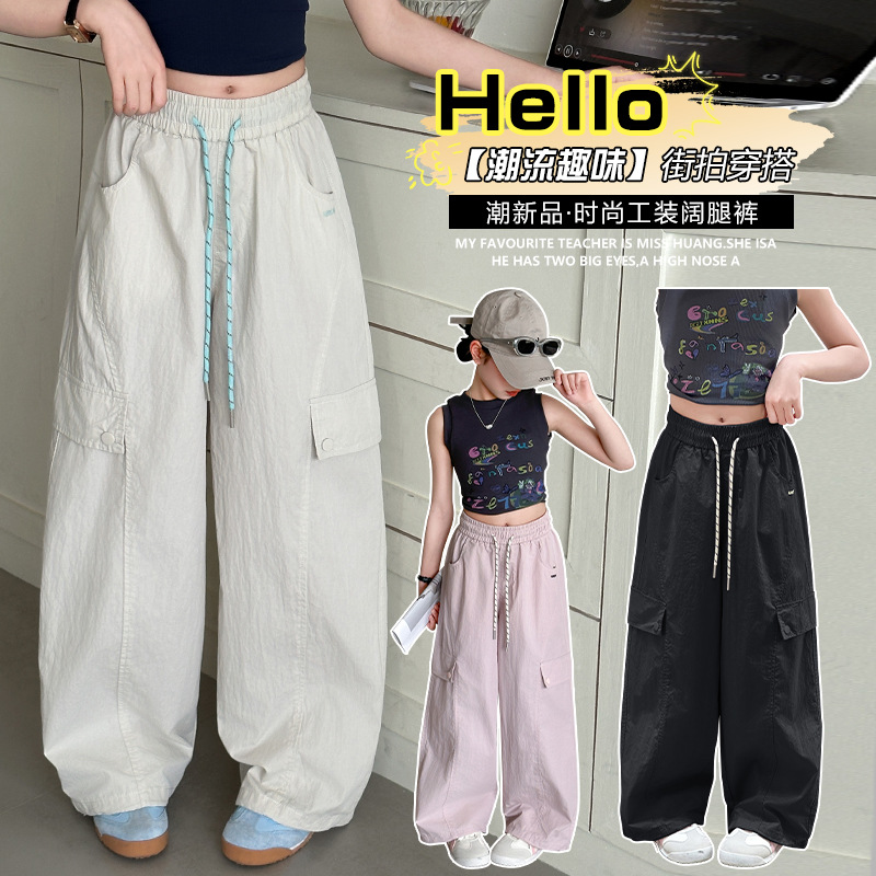 女の子カジュアルパンツ 2025 夏薄手パンツ大きな子供用ファッショナブルで多用途なワイドレッグパンツ軽くて防蚊パンツトレンディ