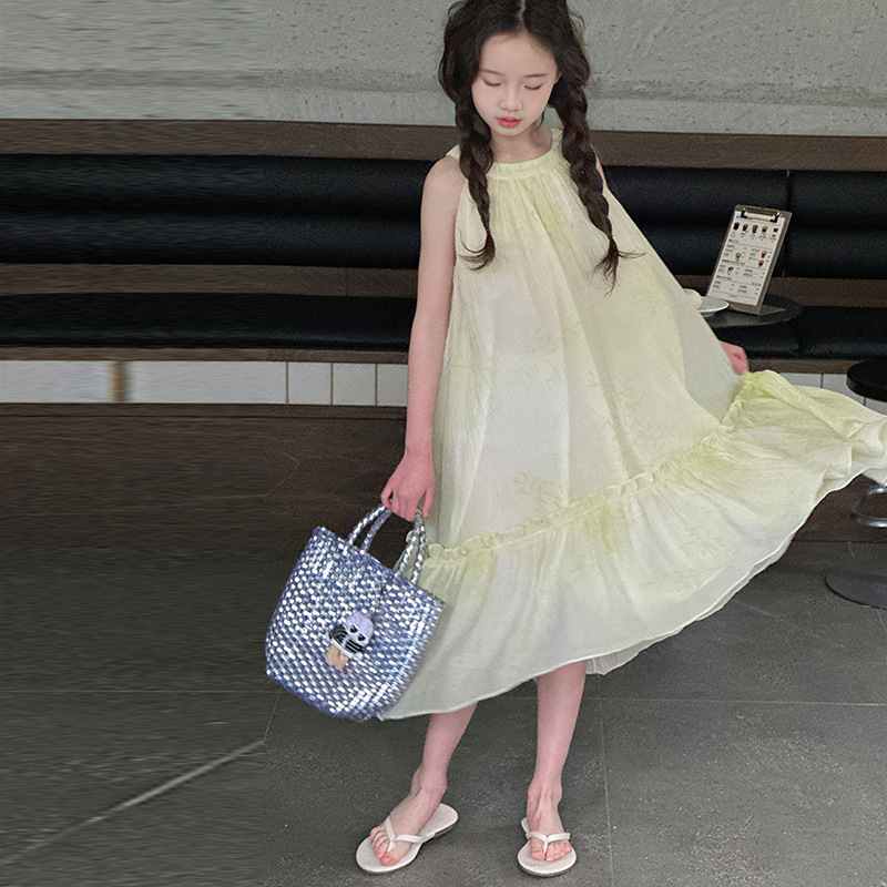 女の子の袖なしワンピース2025夏の新型子供のおしゃれな洋風リゾート風ビーチスカートの女の子のベストスカート
