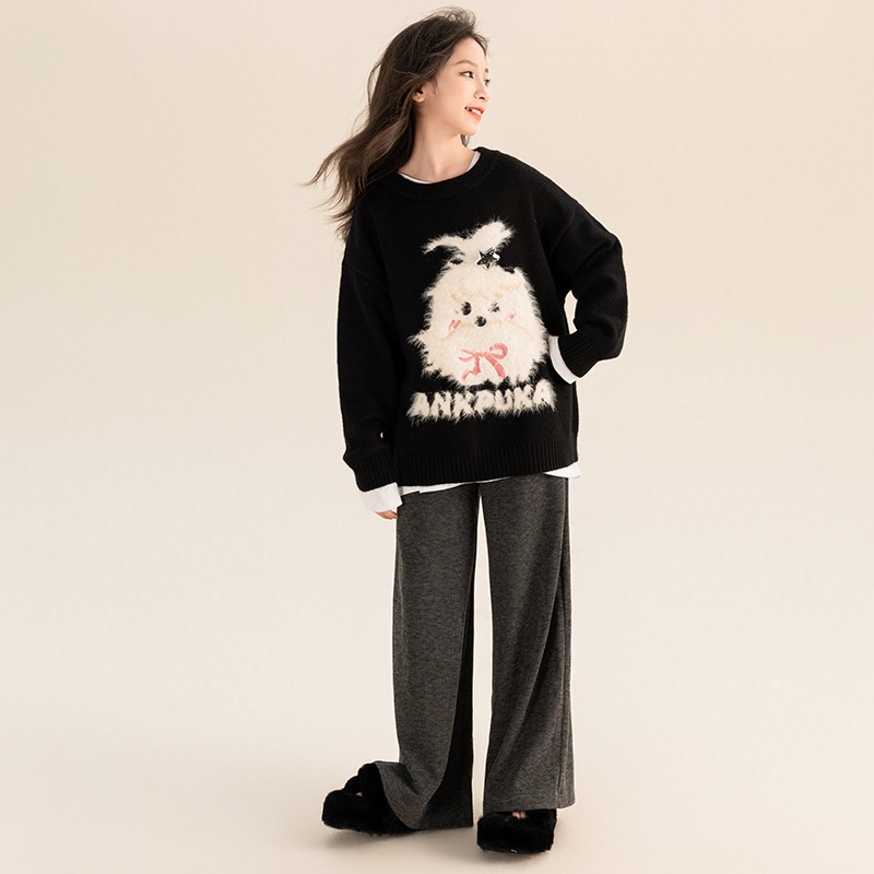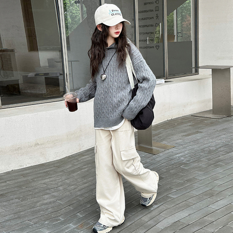 女の子の漫画のセーターの韓国版のスーツの春秋服の女の子の洋風のカジュアルな広い足のズボンの流行の中で大きい子供の2つのセット