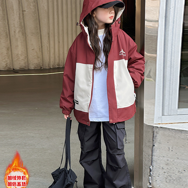 女の子用秋冬3in1ジャケット 2025年新作 大きな子供向け おしゃれでスタイリッシュなワークウェア風 アウトドアカジュアル 厚手ジャケット