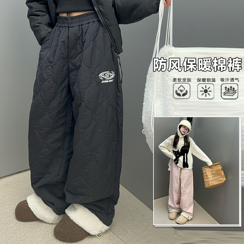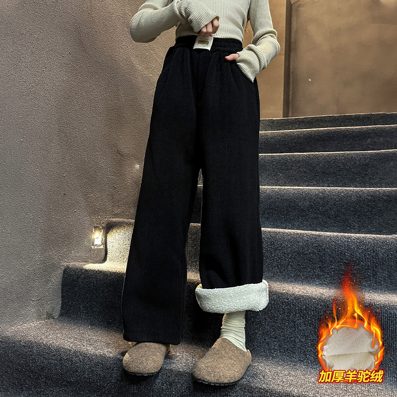 女の子のベルベットの厚い奥粒のベルベットのズボン2024冬の新しい大人の子供のファッション的な空気の暖かい広脚のズボンの綿のズボン
