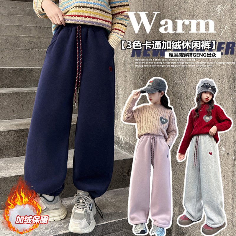 女の子用裏起毛スウェットパンツ 2025年冬新作 大きな子供向け おしゃれでスタイリッシュな厚手カジュアルパンツ 多用途でファッショナブルなスポーツパンツ
