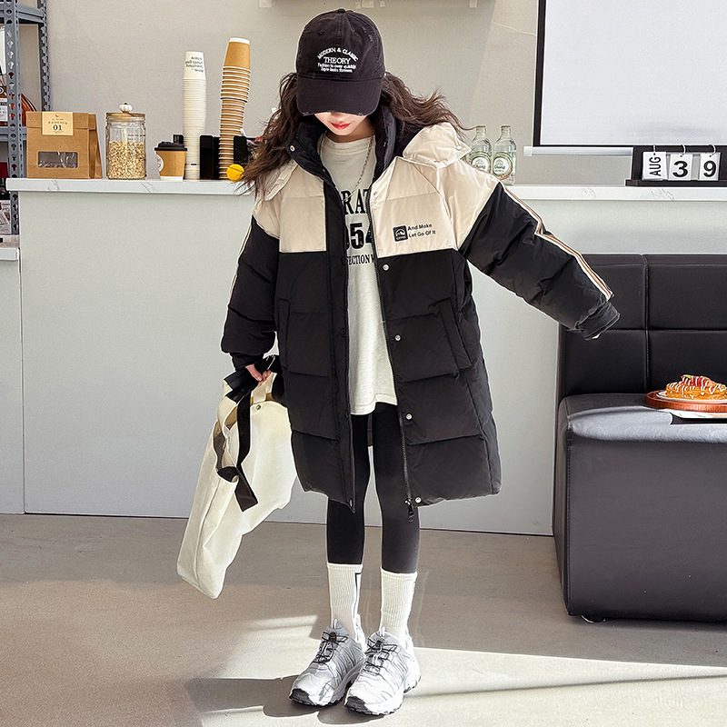 女の子の長い綿服2024冬の新しい子供の韓国版のカジュアルな厚いグラフェンの発熱の羽毛の綿服のコート