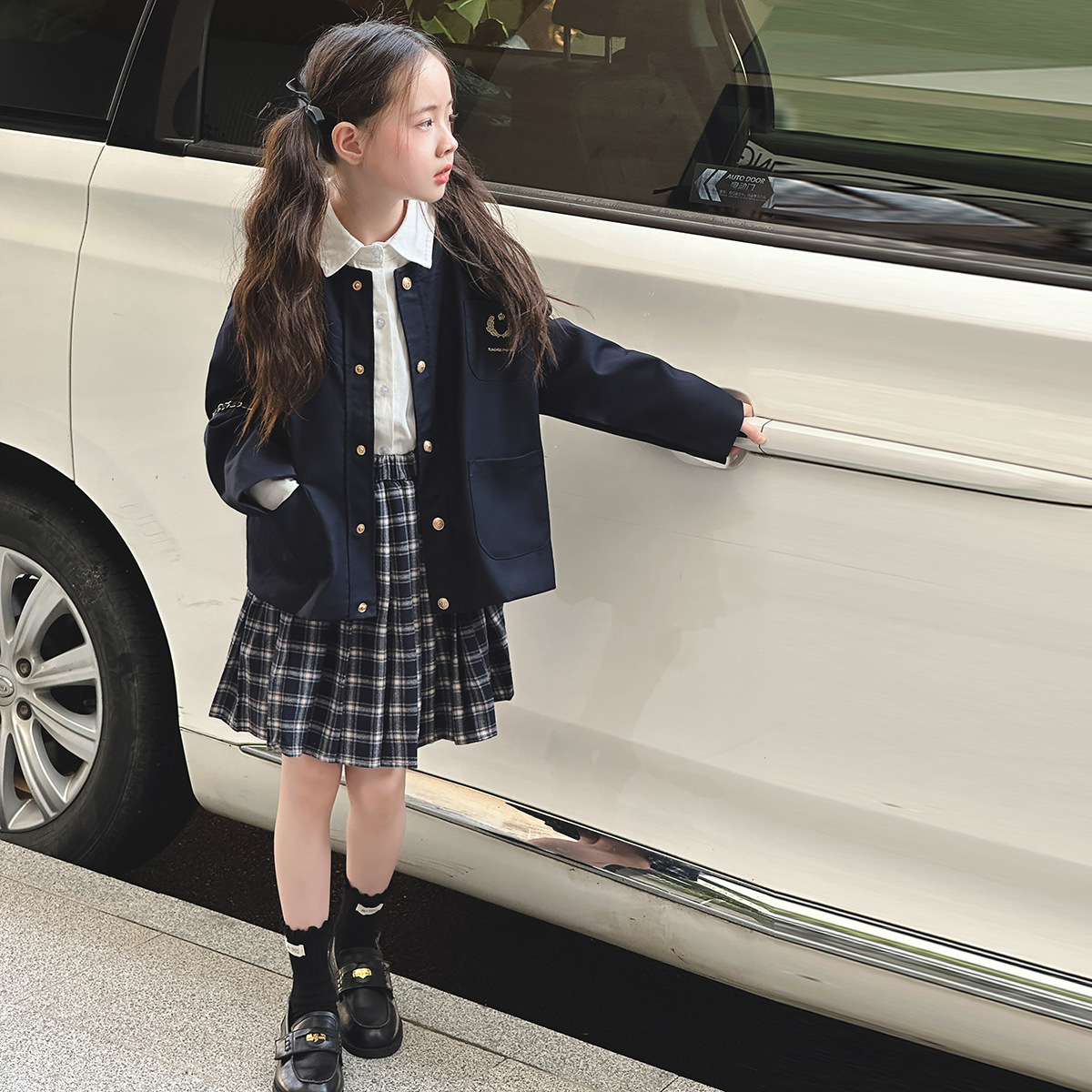 女児学院風制服2025春新作大童韓国版洋気カーディガンコートシャツ百パートナースカート3点セット