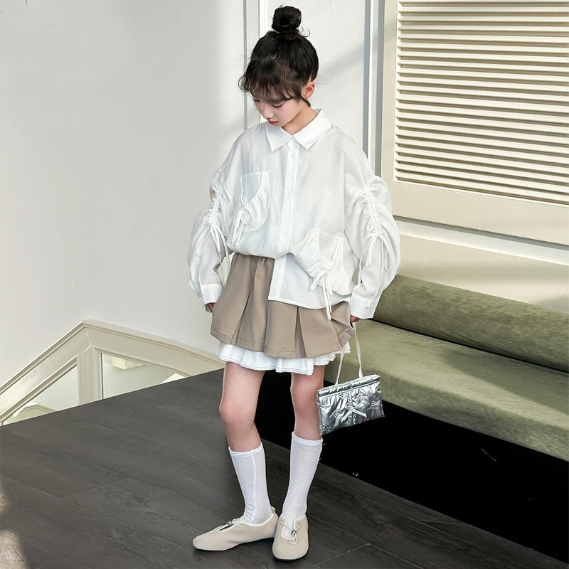 ガールズスーツ2025年と秋の新型子供の個性的なシャツの半身のスカートの洋風の韓国版の流行の2つのセット