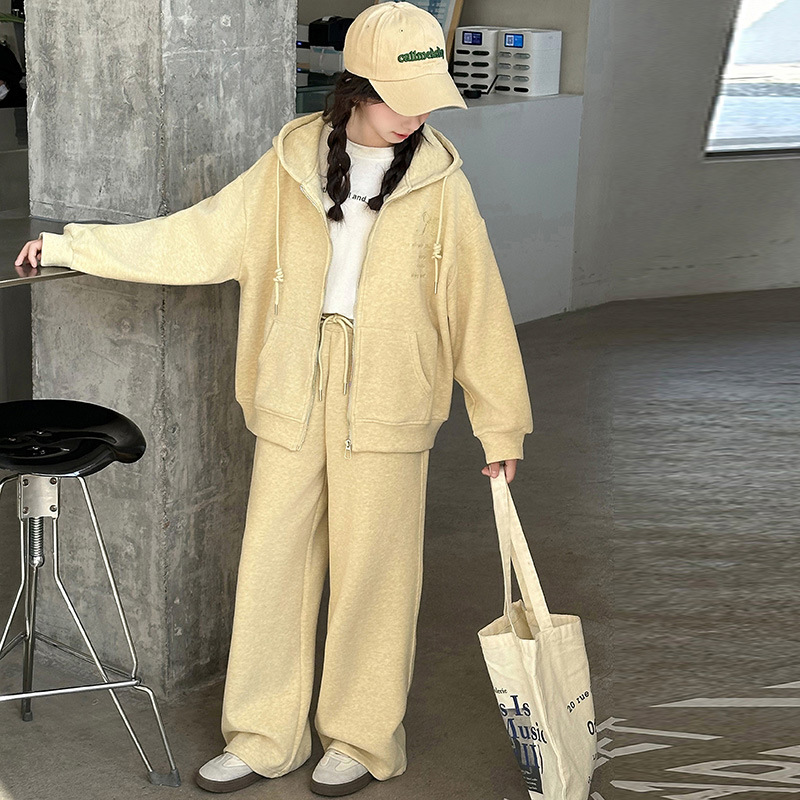 女の子フード付きスポーツウェアセット2025春新作大童韓国風カジュアル子供用カーディガン2点セット